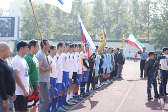 Дружеская встреча по мини-футболу и перетягиванию каната между командами Военно-морских сил Ирана и Каспийской флотилии Военно-морского флота России состоялась сегодня в Махачкале, на стадионе имени Елены Исинбаевой.