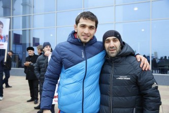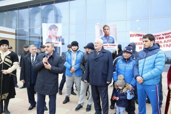 В адрес спортсменов прозвучало много других поздравлений с победой и напутственных слов. Заслуженный тренер России Иманмурза Алиев, двое воспитанников которого стали триумфаторами молодежного чемпионата мира, поблагодарил собравшихся земляков за поддержку и теплый прием, а чуть позже прокомментировал СМИ успех воспитанников.