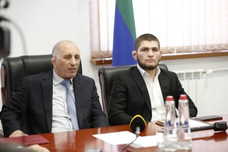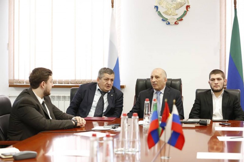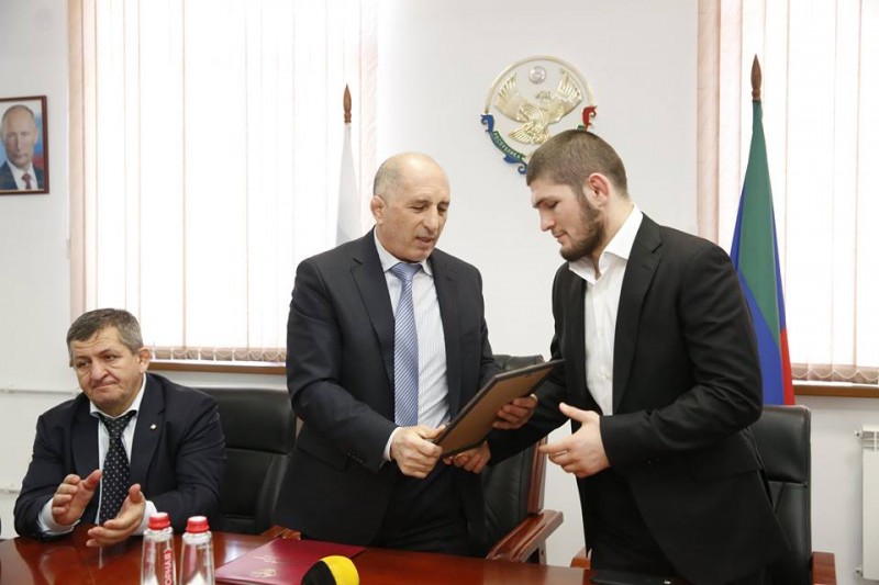 В начале мероприятия Зайнал Салаутдинов вручил Хабибу Нурмагомедову почетную грамоту Минспорта РД, добавив к этому, что грамоты от спортивного ведомства региона у бойца еще не было.