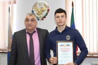 Врио министра по физической культуре и спорту РД Магомед Магомедов поздравил Джамбулата Бижамова и его тренера Рашидбека Ахмедова с победой на молодежном чемпионате мира по боксу.