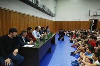 С юными спортсменами встретились статс-секретарь замминистра спорта РД, олимпийский чемпион Гайдарбек Гайдарбеков, начальник Управления физической культуры, спорта и подготовки резерва Халитбег Махачев, олимпийский чемпион Абдулрашид Садулаев, чемпионы мира по вольной борьбе Магомед Курбаналиев, Магомедрасул Газимагомедов и другие.