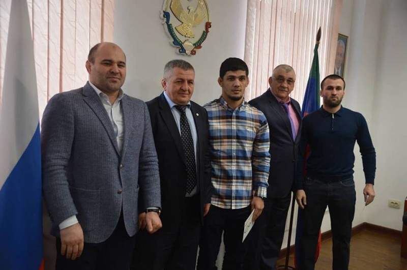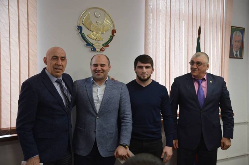 Поздравили также атлетов присутствовавшие на встрече президент региональной федерации спортивной борьбы Сажид Сажидов, заслуженные тренеры России Магомед Гусейнов и Абдулманап Нурмагомедов.