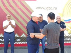 Участников фестиваля пришли поприветствовать первый заместитель министра по физической культуре и спорту РД Зайнал Салаутдинов и федеральный посол ГТО в Дагестане, чемпион мира, пятикратный чемпион Европы по вольной борьбе Курамагомед Курамагомедов.