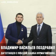 Глава РД Владимир Васильев поздравил дагестанцев с победой Хабиба Нурмагомедова в Абу-Даби. Глава региона адресовал слова поздравления и самому Хабибу Нурмагомедову.