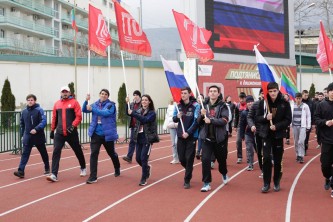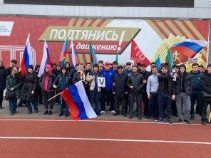 В мероприятии приняли участие более 500 человек, которые развернули огромное полотно российского триколора и выстроились в буквы «Z», и «V», символизирующие поддержку российской армии.