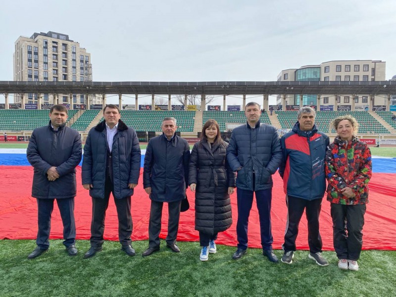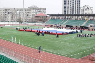 Патриотическая акция «ZA наших» в поддержку Президента России Владимира Путина и российских военнослужащих, выполняющих боевой долг в ходе специальной военной операции на Украине, состоялась сегодня на стадионе имени Е. Исинбаевой в Махачкале.