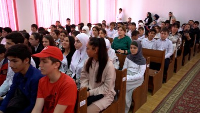 Подарки учащимся доставили министр по физической культуре и спорту РД Сажид Сажидов и советник руководителя республики Шамиль Алиев. Гостей в стенах учебного заведения встретил мэр Дербента Рустамбек Пирмагомедов.