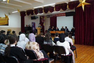С духовно-просветительской лекцией в школе № 14 г. Махачкалы выступили начальник Управления физической культуры, спорта и подготовки резерва Минспорта РД Халитбег Махачев, полномочный представитель Муфтията РД, руководитель республиканского отдела просвещения Хусейн Гаджиев, призер чемпионата мира и Европы по вольной борьбе Магомед Исагаджиев, чемпион мира по грэпплингу Билал Курбабагамаев и др.