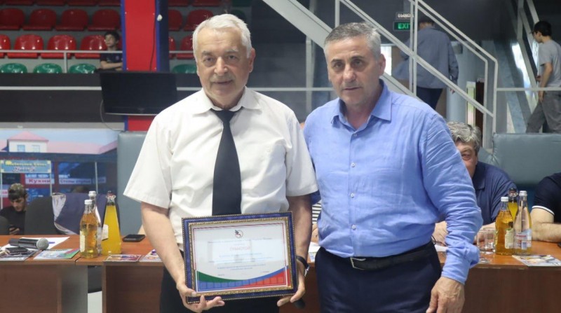 В рамках встреча начальник Управления физической культуры, спорта и подготовки резерва Минспорта РД Халитбег Махачев вручил от имени министра спорта Сажида Сажидова ведомственную благодарственную грамоту Багавдину Куниеву, который более 30 лет проработал в сфере физической культуры и спорта города Хасавюрта.