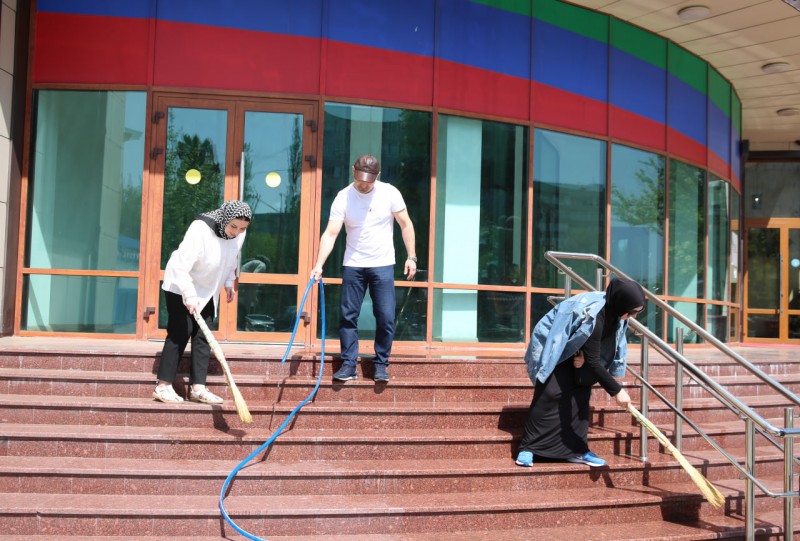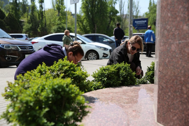 Они покрасили деревья и бордюры на территории вокруг административного здания Минспорта, очистили мусор, скопившийся у памятника Али Алиеву, вырывали сорняки на клумбах, провели посадку саженцев.