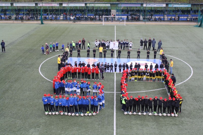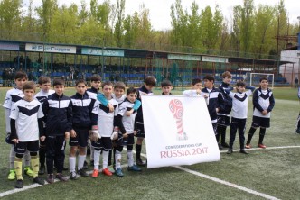 Воспитанники школы выстроились на поле так, чтобы сформировать цифру 50, символизирующую 50 дней до старта Кубка конфедераций.