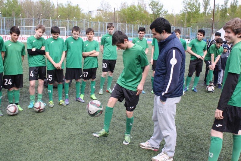 С предстоящим в стране крупным футбольным турниром, ребят, занимающихся в школе Маркарова футболом, поздравили директор учреждения Александ Маркаров, замминистра спорта Гайдарбек Гайдарбеков, председатель столичного Комитета по спорту, туризму и делам молодежи Марат Ибрагимов.