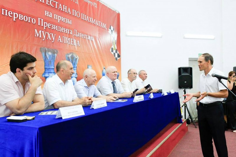 В торжественной церемонии открытия очередного чемпионата республики участие приняли первый Президент Дагестана Муху Алиев, первый заместитель министра по физической культуре и спорту республики Зайнал Салаутдинов, президент республиканской Федерации шахмат Магомед Сулейманов, председатель городского Комитета по спорту, туризму и делам молодежи Марат Ибрагимов, известные спортсмены, друзья и соратники Муху Алиева.