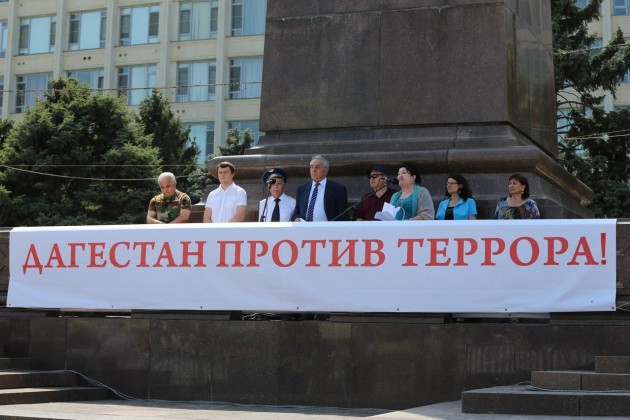 Митинг против террора состоялся на площади Махачкалы, Президент Национальной Академии наук РД Гамид Бучаев, обратился к дагестанцам, « Наша Республика живет спокойно уже три года, однако мы не можем считать что угрозы не существует, но в наших силах путем консолидации общества бороться и противостоять проявлению терроризма- заявил Г. Бучаев.