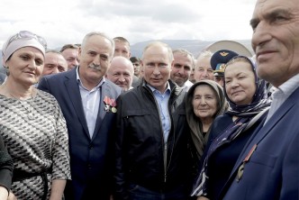В ходе своего визита Путин успел пообщаться с сельчанами и ополченцами военных событий 20-летней давности.