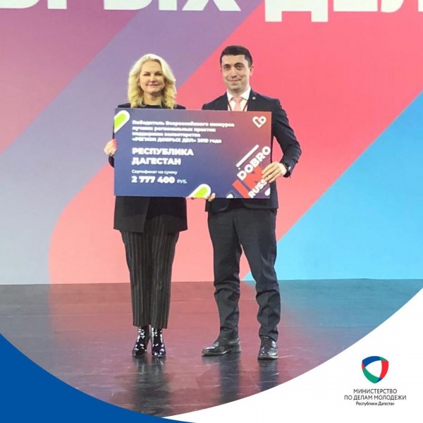 В конкурсе лучших региональных практик поддержки добровольчества «Регион добрых дел» победу одержал Дагестан. Специальный сертификат на сумму свыше 2,7 млн рублей был вручен Камилу Саидову.