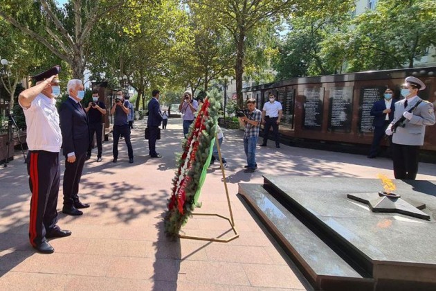 К Мемориалу Памяти сотрудникам, погибшим при исполнении служебного долга 3 сентября в России отмечается День солидарности в борьбе с терроризмом и в честь этого Глава республики возложил цветы к Мемориалу Памяти сотрудникам, погибшим при исполнении служебного долга. Была объявлена минута молчания.